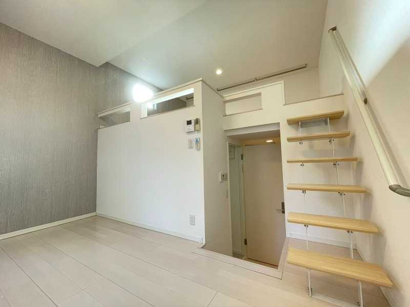 | 設備 | インターホン(TVモニター付き)、角部屋、デザイナーズ、フローリング、ロフト、照明器具、ベランダ・バルコニー、下駄箱、バス・トイレ別(別室)、シャワー、浴室乾燥機、給湯、ウォシュレット、ウォームレット、洗面台、洗面所独立、シャンプードレッサー、洗濯機置き場(室内)、システムキッチン、冷房のみ、エアコン、エアコン台数(1)、BS、光ファイバー、インターネット使用料無料 | ||