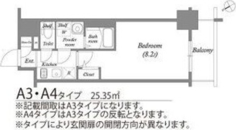 | 1K | 洋室 8.2畳 | 25.35㎡ |