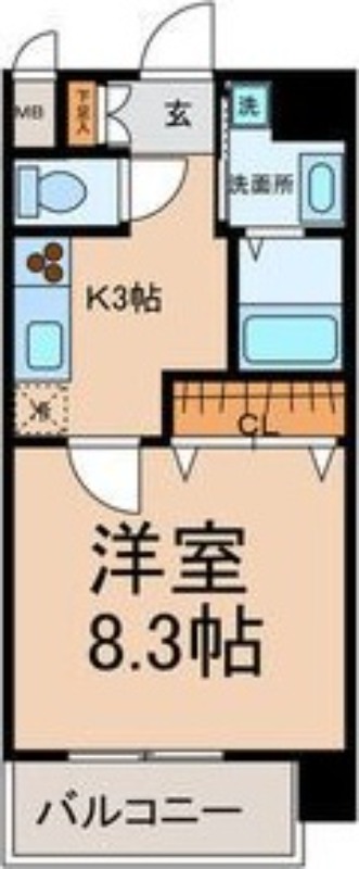| 間取り詳細 | 洋室 8.3畳 、 K 3畳 |