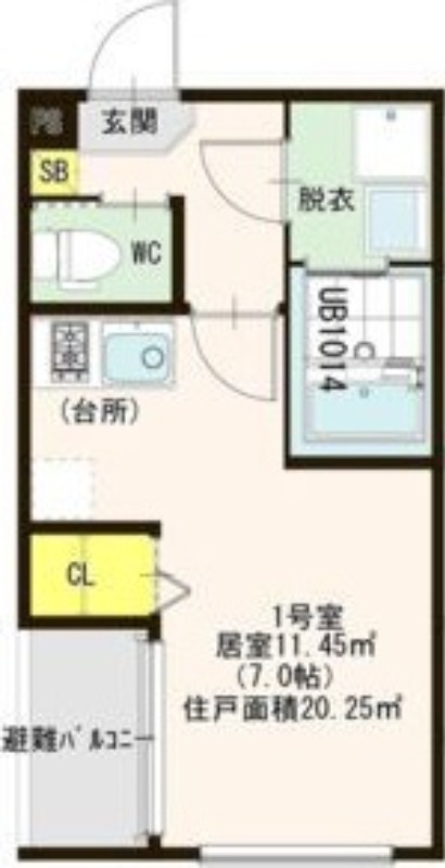 | ワンルーム | 洋室 7畳 | 20.25㎡ |