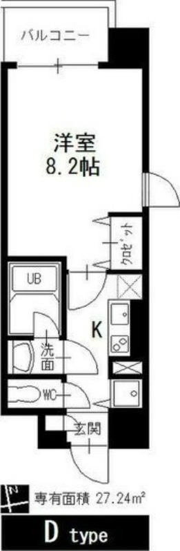 | 間取り | 1K | 面積 | 27.24㎡ |