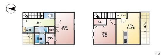 | 間取り詳細 | LDK 11.5畳 、 洋室 7.5畳 、 洋室 6畳 |