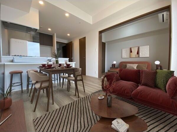 | 設備 | ガス(都市ガス)、インターホン(TVモニター付き)、オートロック、宅配ボックス、駐輪場、バイク置き場、フローリング、照明器具、ベランダ・バルコニー、下駄箱、バス・トイレ別(別室)、シャワー、浴室乾燥機、給湯、ウォシュレット、洗面台、シャンプードレッサー、洗濯機置き場(室内)、コンロ設置済、コンロ口数(2)、コンロ種類(都市ガス)、システムキッチン、カウンターキッチン、対面キッチン、冷房のみ、エアコン、エアコン台数(2)、24H換気システム、BS、インターネット使用料無料 | ||