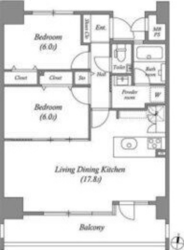 | 間取り詳細 | 洋室 6畳 、 洋室 6畳 、 LDK 17.8畳 |