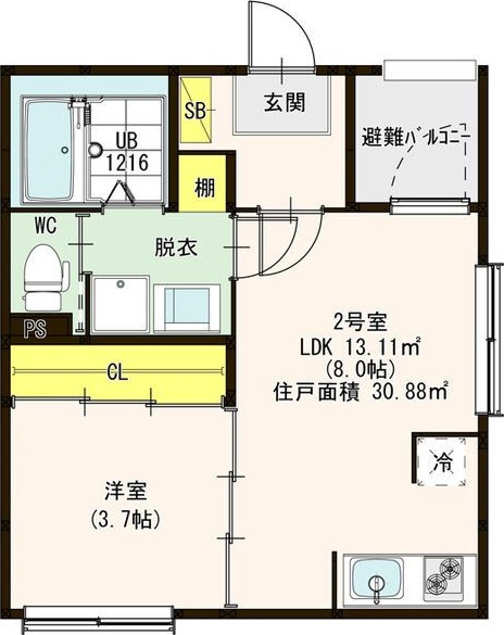 | 間取り | 1LDK | 面積 | 30.88㎡ |