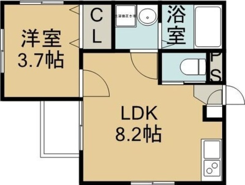 | 間取り詳細 | LDK 8.2畳 、 洋室 3.7畳 |
