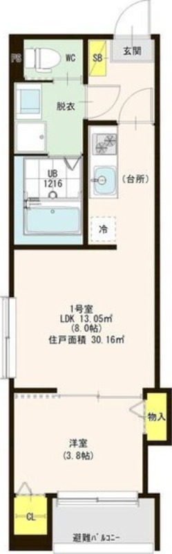 | 間取り | 1LDK | 面積 | 30.16㎡ |