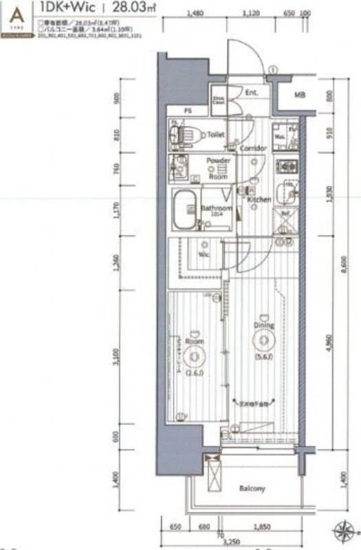 | 間取り | 1DK | 面積 | 28.03㎡ |