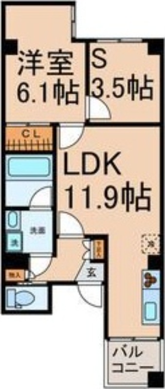 | 間取り詳細 | 洋室 6.1畳 、 LDK 11.9畳 、 S 3.5畳 |