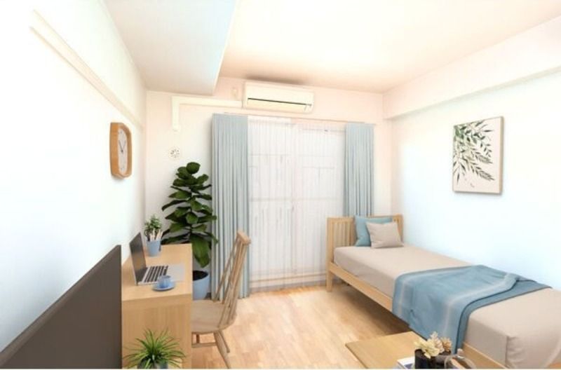 | 設備 | オール電化、インターホン(TVモニター付き)、防犯カメラ、オートロック、宅配ボックス、駐輪場、バイク置き場、クッションフロア、ベランダ・バルコニー、クローゼット、クローゼット数(1)、下駄箱、バス・トイレ別(別室)、シャワー、給湯、洗面台、洗面所独立、シャンプードレッサー、洗濯機置き場(室内)、コンロ設置済、コンロ口数(2)、コンロ種類(電気)、冷房のみ、エアコン、エアコン台数(1)、CATV、光ファイバー、インターネット使用料無料 | ||