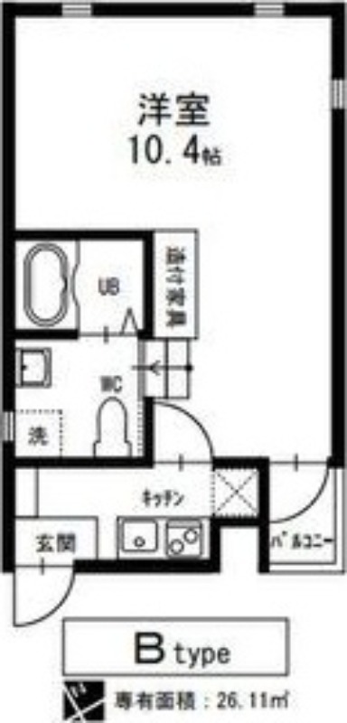 | 間取り | 1K | 面積 | 26.11㎡ |