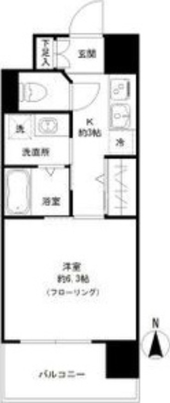 | 間取り詳細 | K 3畳 、 洋室 6.3畳 |