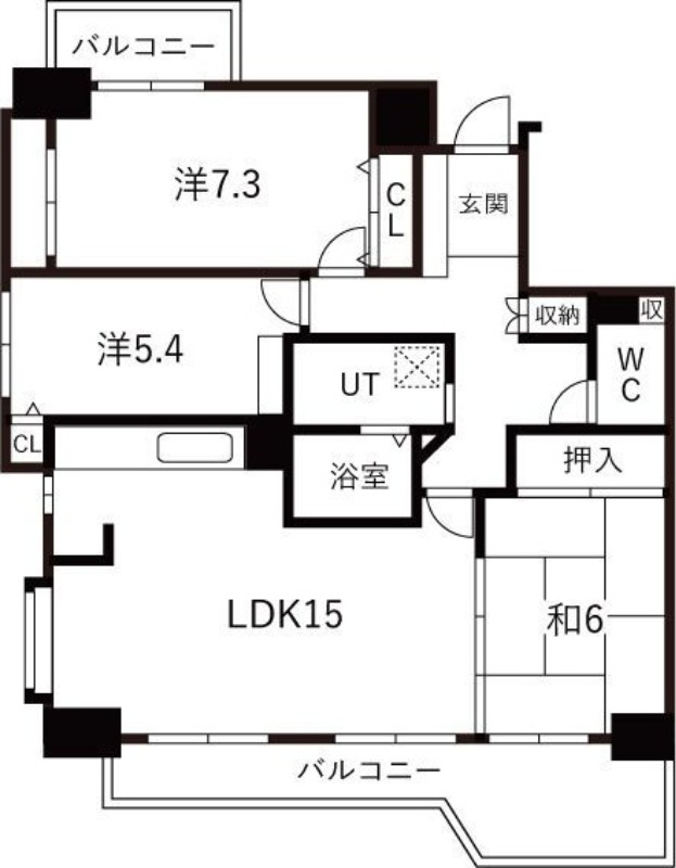 | 間取り詳細 | 洋室 7.3畳 、 洋室 5.4畳 、 和室 6畳 、 LDK 15畳 |