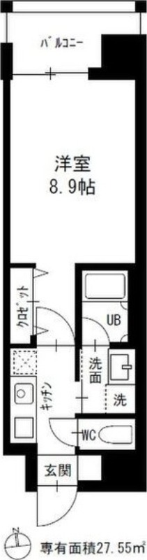 | 間取り | 1K | 面積 | 27.55㎡ |