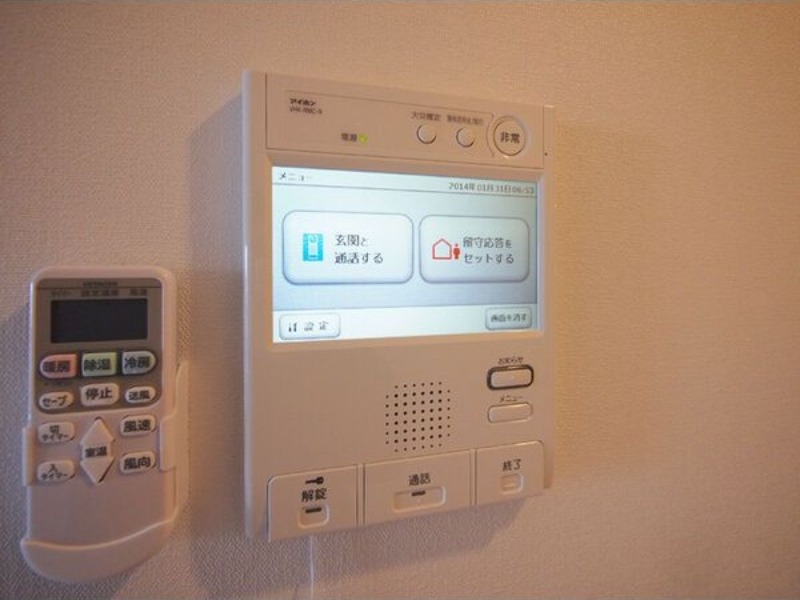 | 設備 | インターホン(TVモニター付き)、防犯カメラ、オートロック、宅配ボックス、専用ゴミ置き場(あり)、駐輪場、バイク置き場、ベランダ・バルコニー、下駄箱、バス・トイレ別(別室)、シャワー、浴室乾燥機、給湯、ウォシュレット、洗面台、洗面所独立、洗濯機置き場(室内)、コンロ設置済、コンロ口数(2)、コンロ種類(都市ガス)、システムキッチン、冷房のみ、エアコン、エアコン台数(1)、インターネット使用料無料 | ||