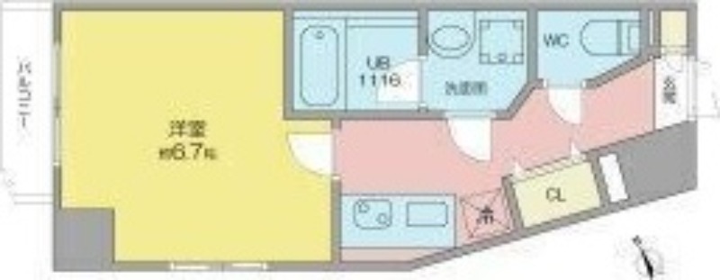 | 間取り詳細 | K 3畳 、 洋室 6.7畳 |