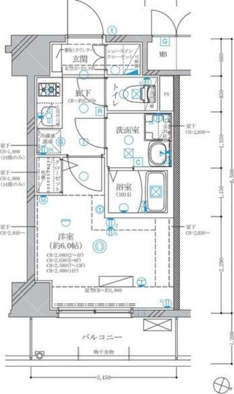 | 間取り | 1K | 面積 | 22.42㎡ |