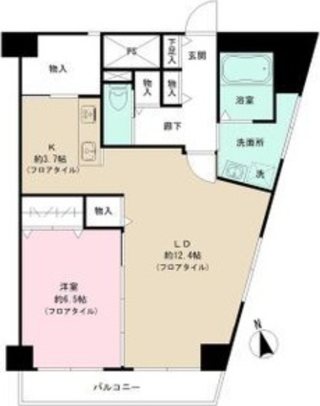 | 間取り詳細 | LD 12.4畳 、 K 3.7畳 、 洋室 6.5畳 |