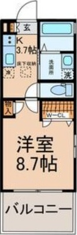 | 間取り詳細 | K 3.7畳 、 洋室 8.7畳 |