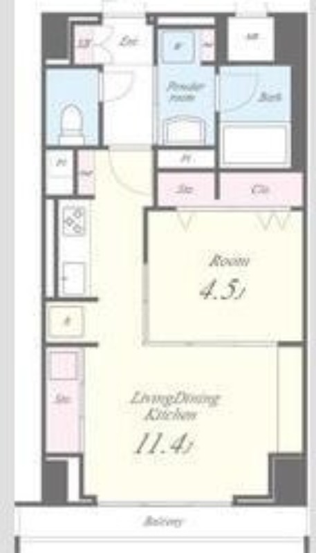 | 間取り詳細 | LDK 11.4畳 、 洋室 4.5畳 |