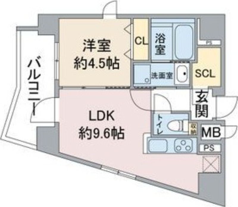 | 間取り詳細 | 洋室 4.5畳 、 LDK 9.6畳 |