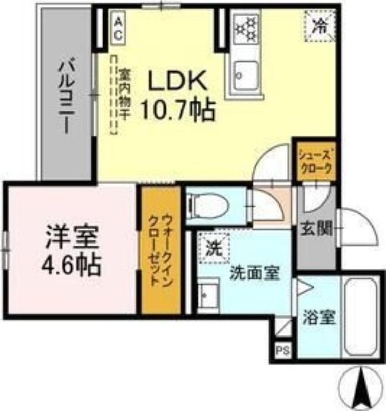 | 間取り詳細 | LDK 10.7畳 、 洋室 4.6畳 |