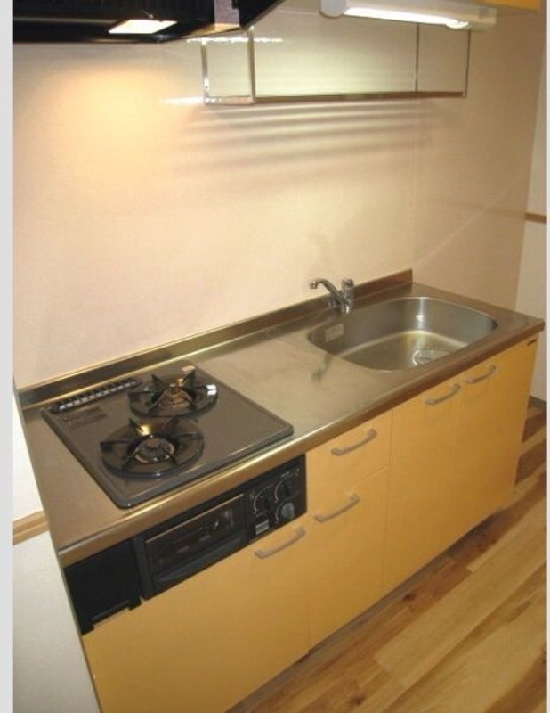 | 設備 | ガス(都市ガス)、オートロック、駐輪場、バス・トイレ別(別室)、洗面台、洗濯機置き場(室内)、コンロ設置済、コンロ口数(2)、コンロ種類(都市ガス)、システムキッチン、冷房のみ、エアコン、エアコン台数(1)、CATV | ||