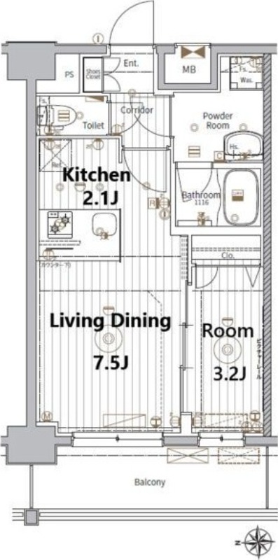 | 間取り詳細 | LD 7.5畳 、 K 2.1畳 、 その他 3.2畳 |