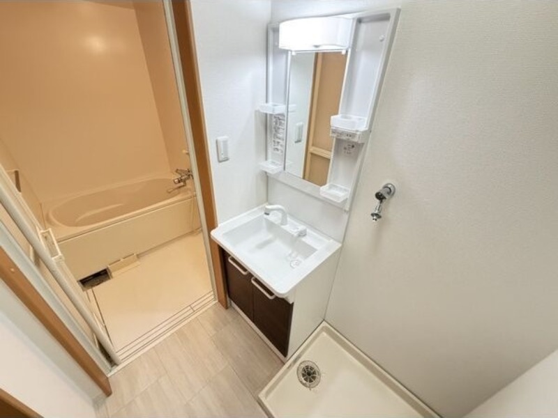 | 設備 | ガス(都市ガス)、インターホン(音声)、オートロック、宅配ボックス、専用ゴミ置き場(あり)、駐輪場、角部屋、給湯、洗面台、洗面所独立、コンロ設置済、コンロ口数(1)、コンロ種類(IH)、冷房のみ、エアコン、エアコン台数(1)、インターネット使用料無料 | ||