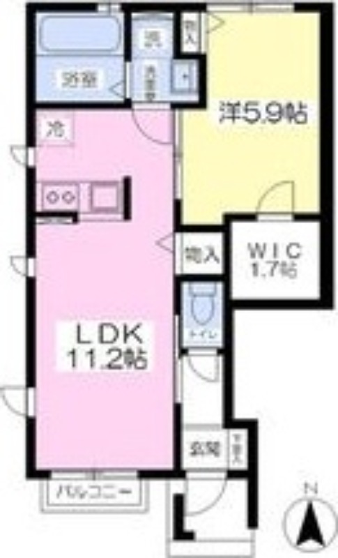 | 間取り詳細 | LDK 11.2畳 、 洋室 5.9畳 |