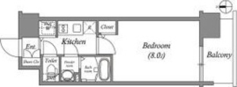 | 1K | 洋室 8畳 | 25.44㎡ |