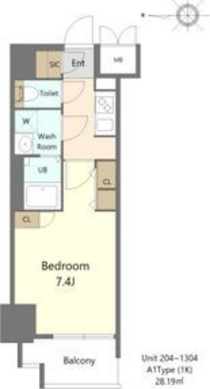 | 1K | 洋室 7.4畳 | 24.17㎡ |