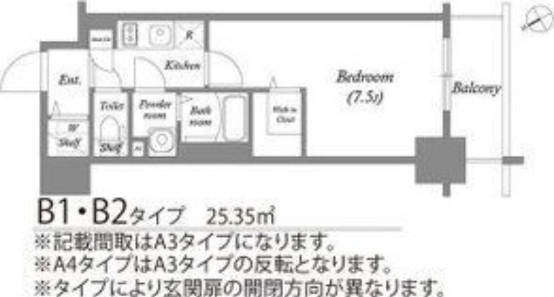 | 1K | 洋室 7.5畳 | 25.35㎡ |